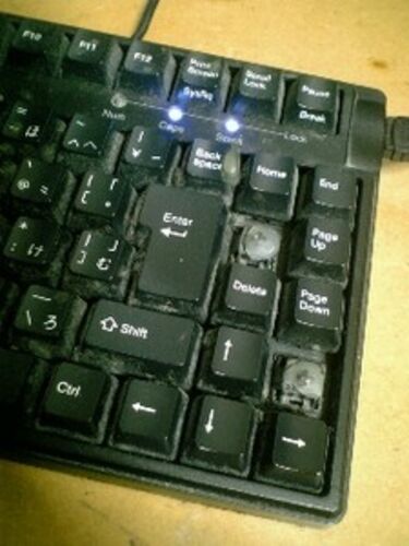 左シフトキーがはいりにくくなっちゃったよぅ。 右シフトキーは生きてるけど記号が入力しづらい・・・ このキーボードは長いこと愛用してました。 いつ買ったのかなあと日記を検索したら、2004/5/6でした。 キータッチはかなり好みで、一部キーの配置だけ不…
